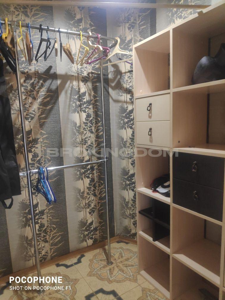 Простора вітальня з вбудованою побутовою технікою, гардеробна кімната