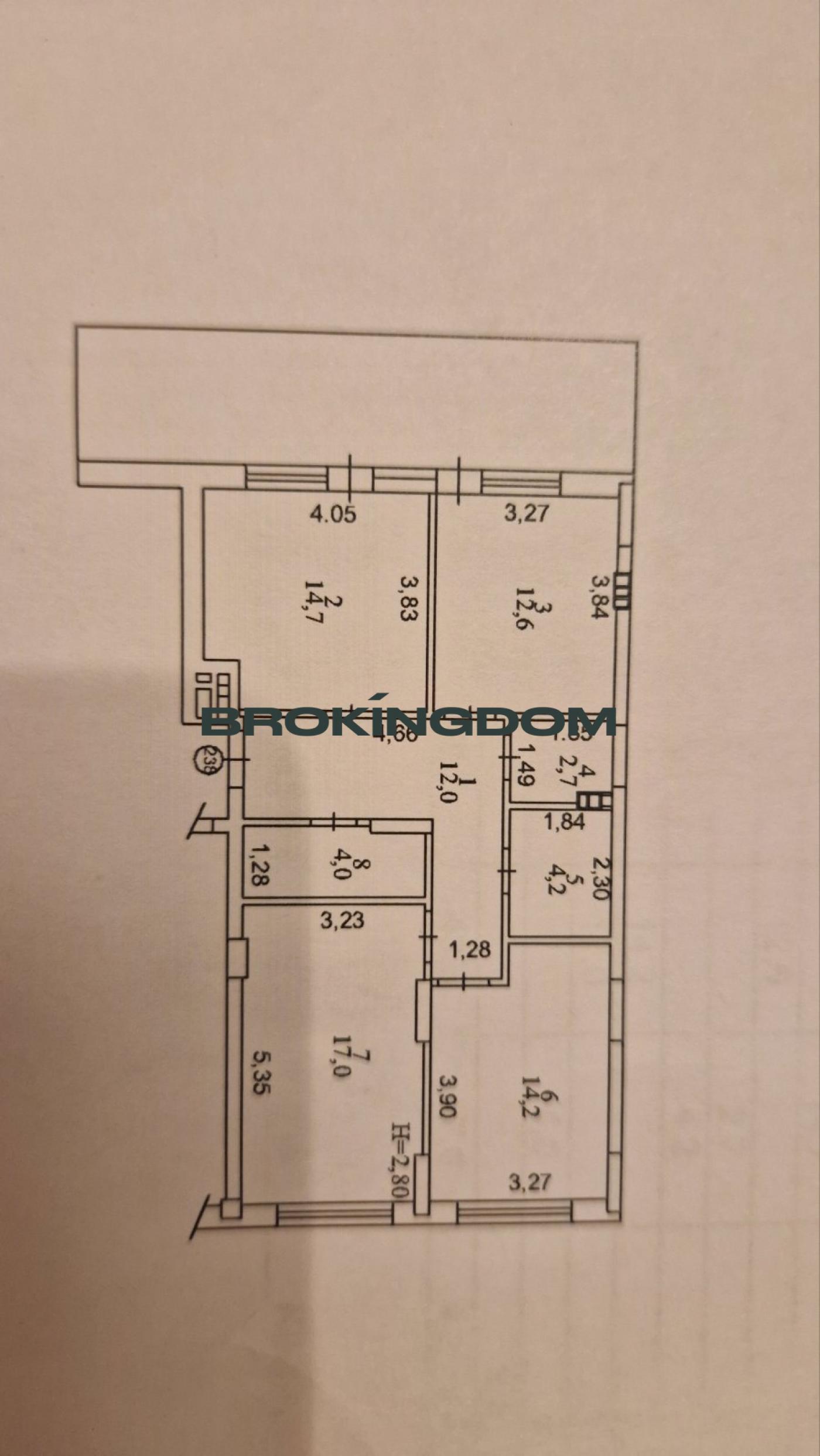 Загальна площа квартири становить 85, 7 кв.м і розташована на 8-му поверсі 10-поверхового будинку.