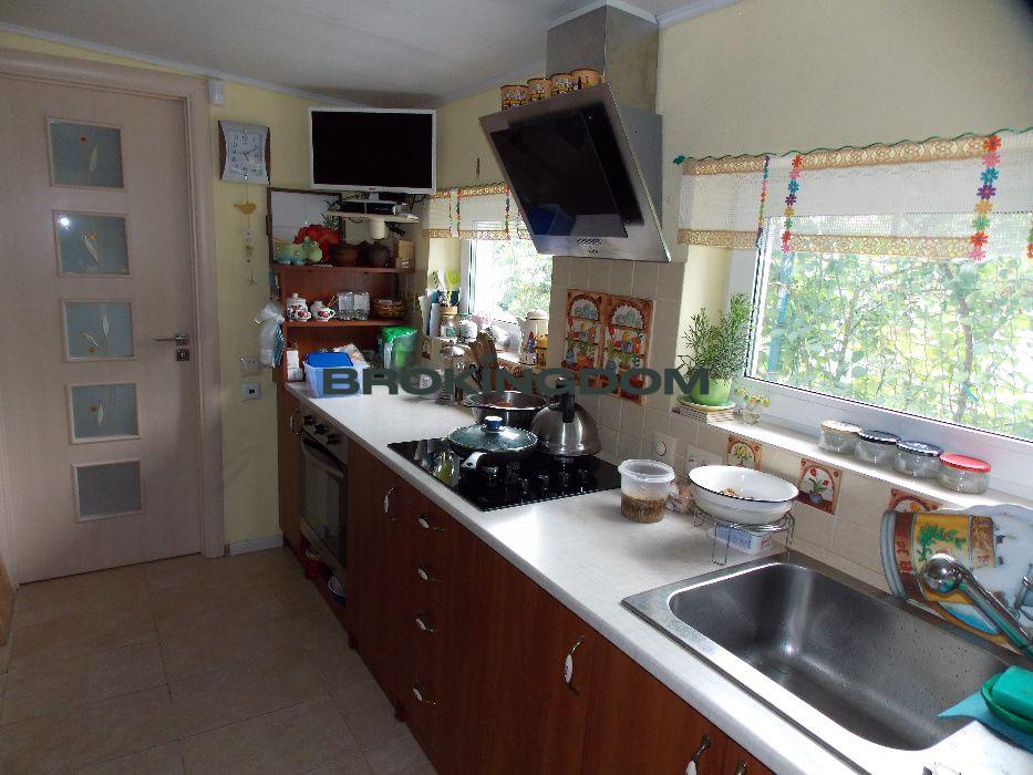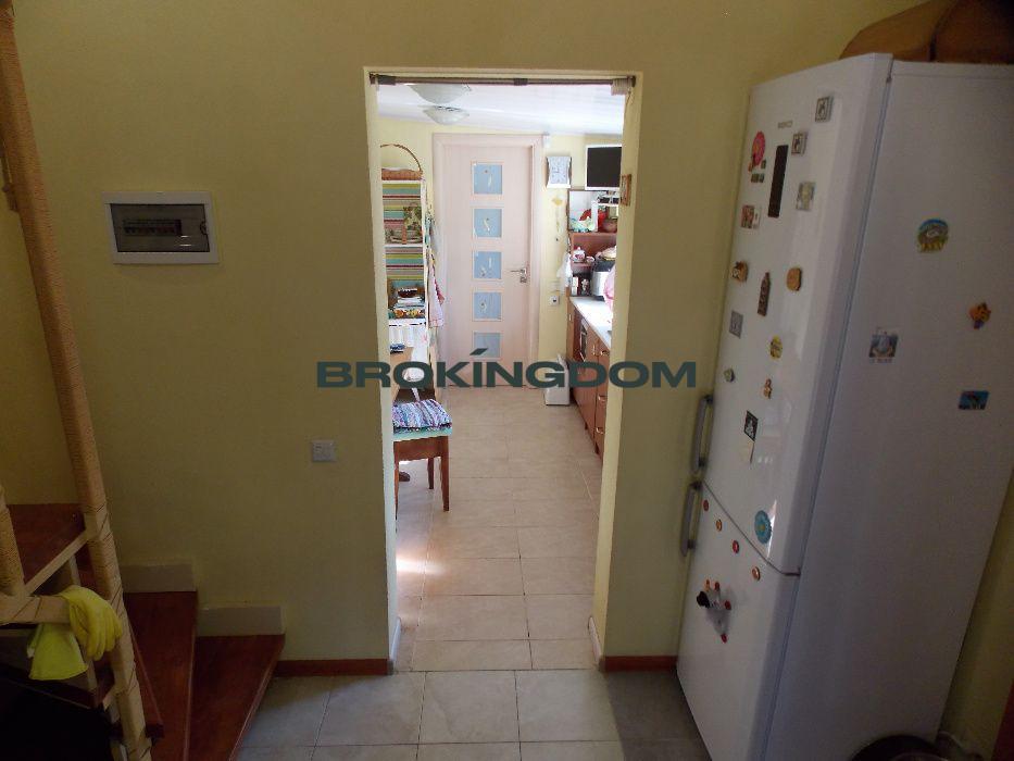 Будинок цегляний, три рівня, два поверхи, 125 м. кв. Кухня і санвузол на першому рівні і два житлових поверхи. На першому – коридор, дві кімнати; на другому – велика кімната, засклена лоджія 6 м.кв. Гараж 30 м.кв., утеплений. Будинок продається з меблями і технікою, що вказані в оголошенні.
