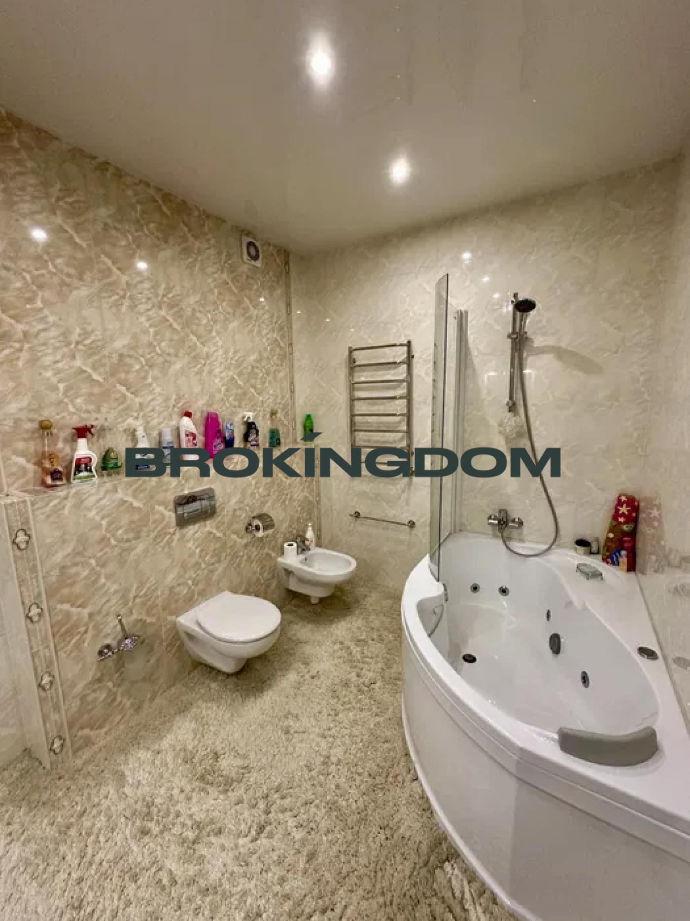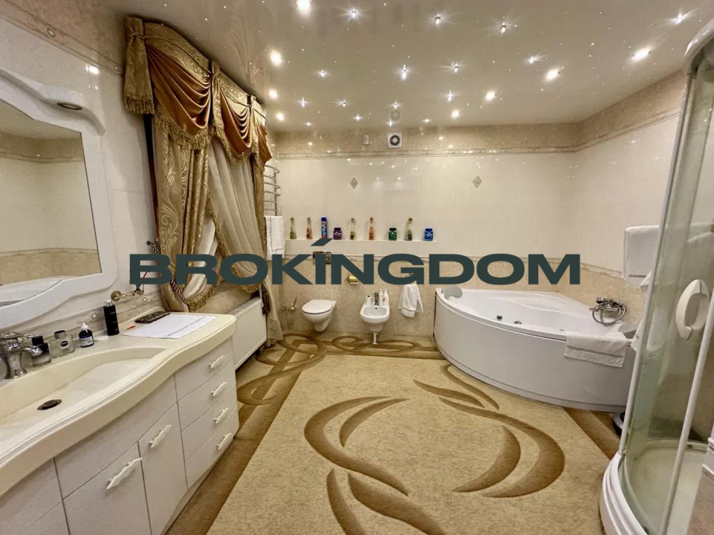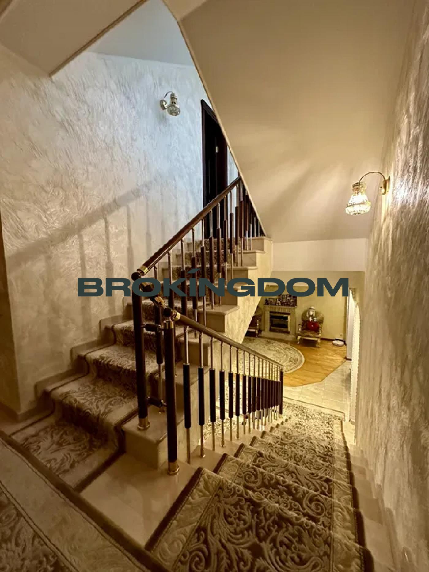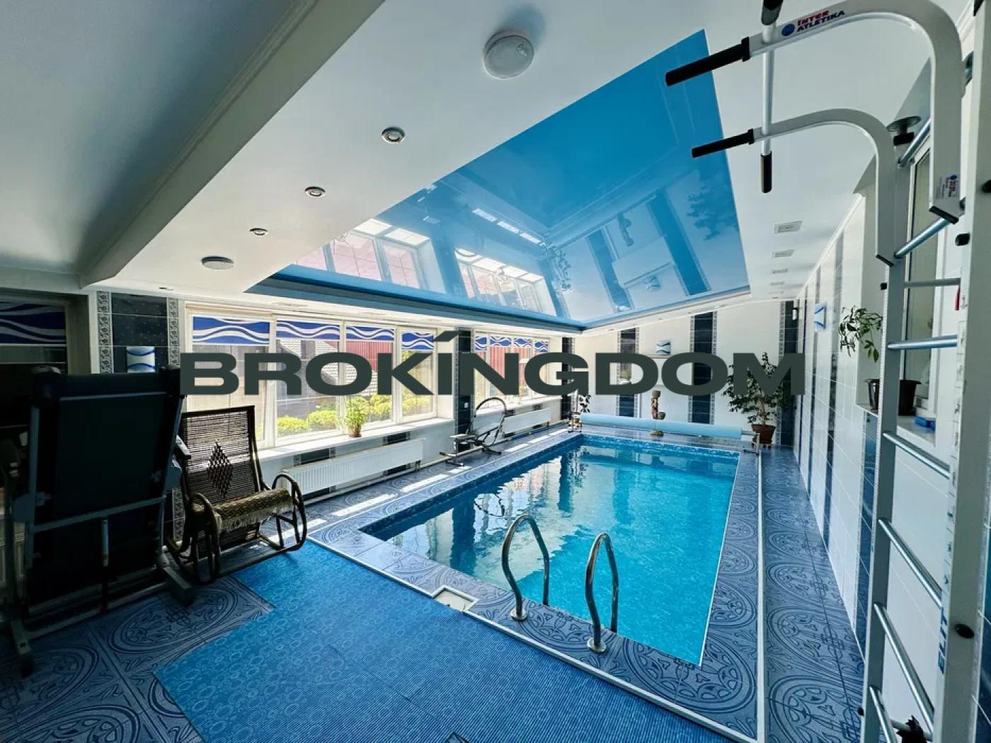 -житловий будинок з критим басейном, гаражем та підвалом, загальною площею 440 м. кв., кімнати розташовані напівповерхами, спальні мають власні санвузли та гардеробні кімнати;
