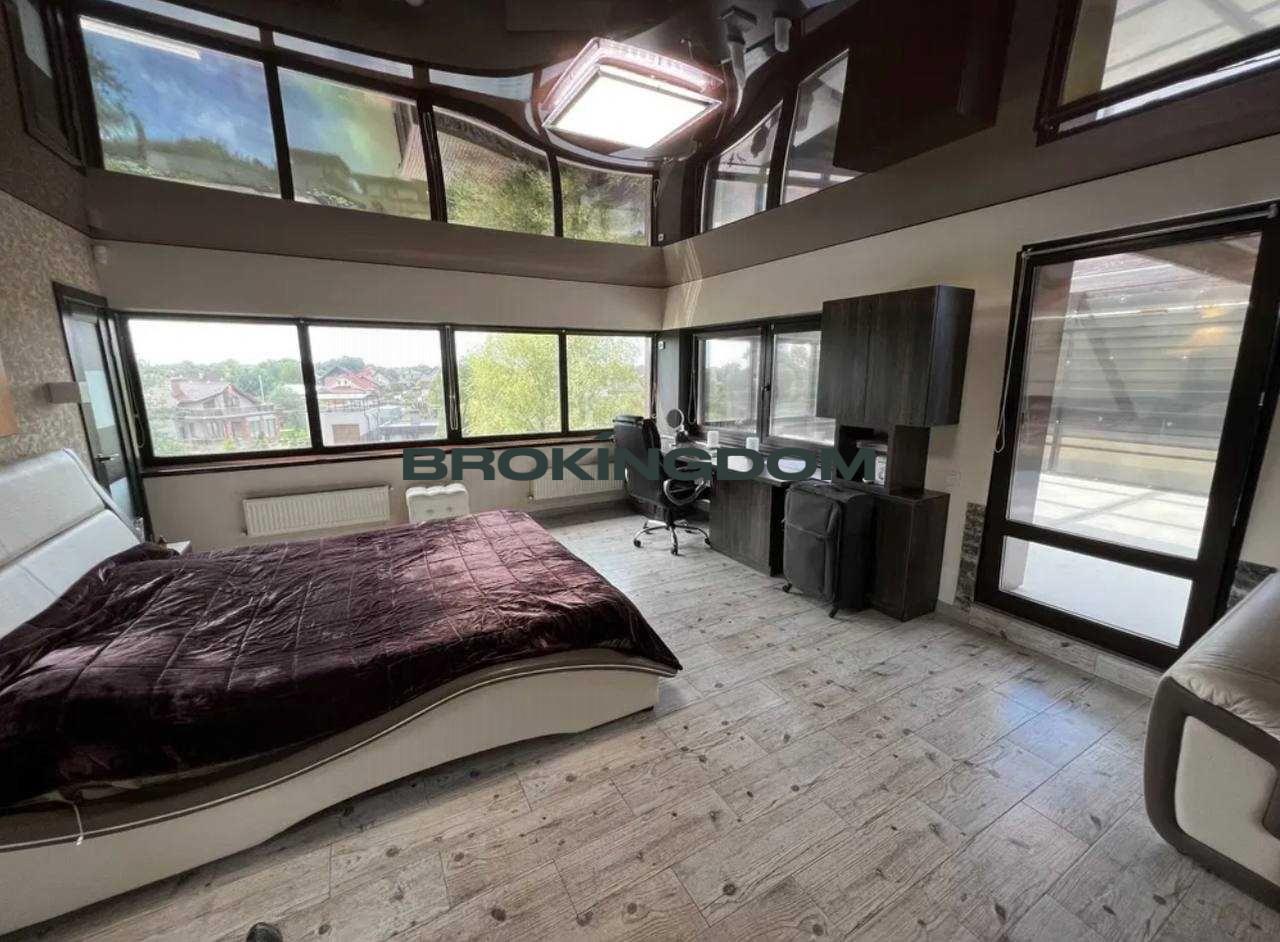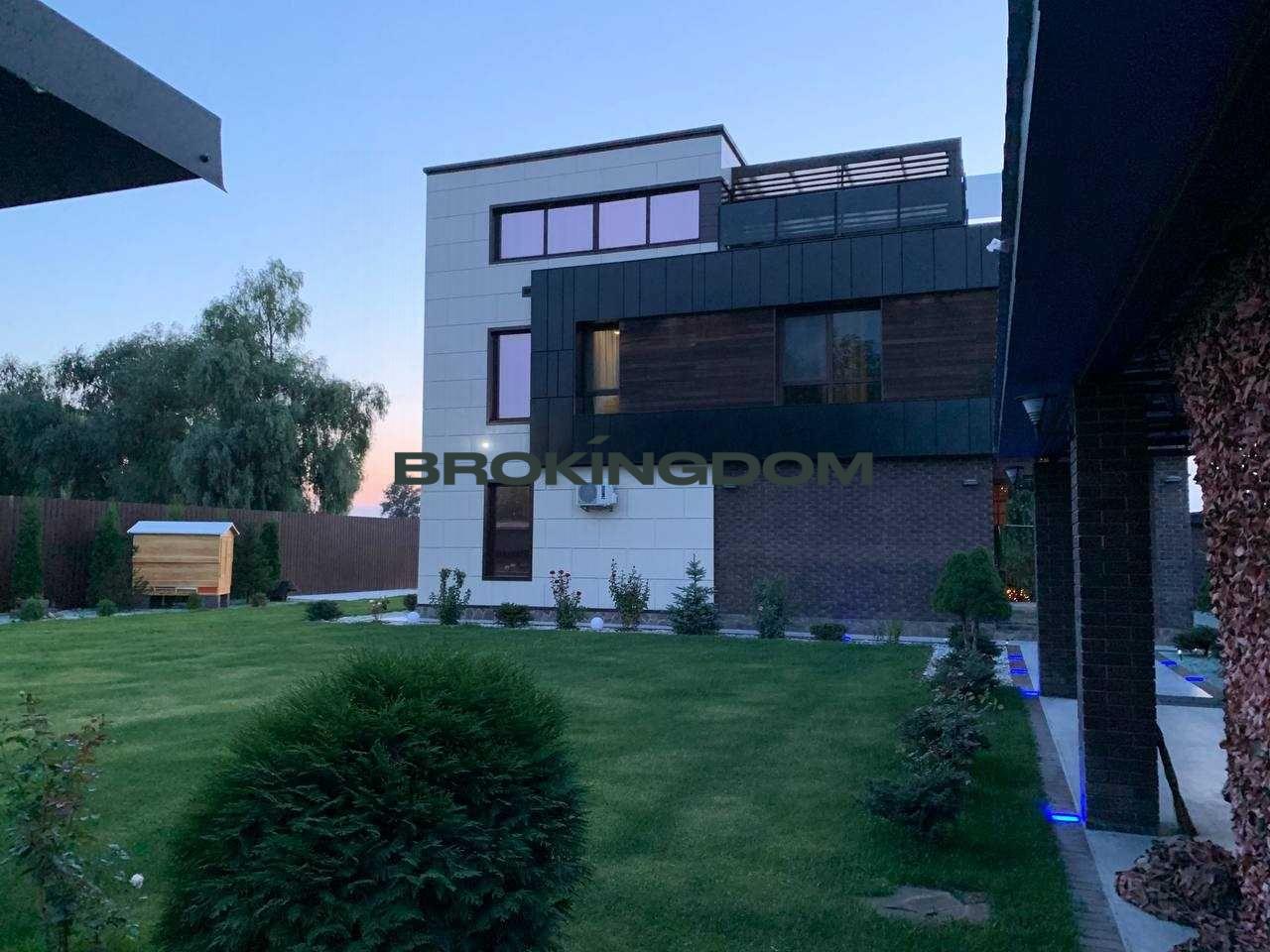 • Планування: 3 поверхи, велика кухня-вітальня з панорамним склінням, 5 спалень, санвузли на кожному поверсі.