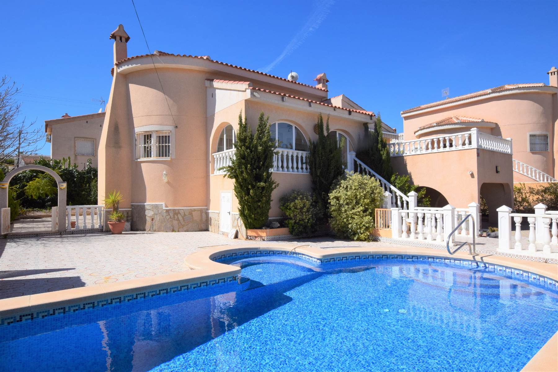 Outside is a large plot including a 8X4 private heated swimming pool complete with built in jacuzzi área. Off road parking accessed via electric gates and an undercover parking área for additional vehicles.