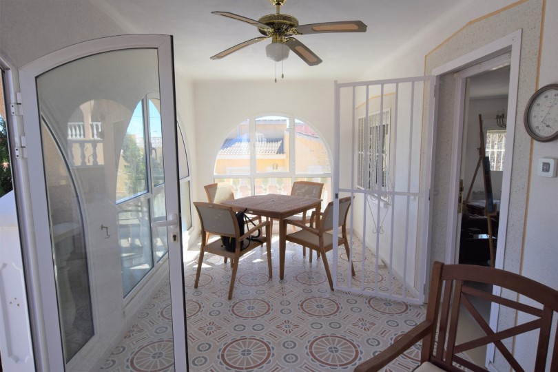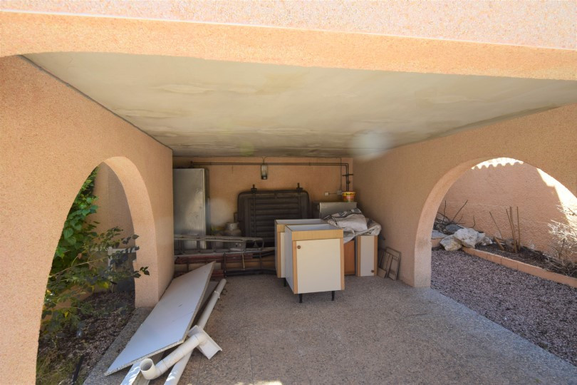 From the glazed entrance terrace there is a seperate door that opens onto a large solárium abover the covered vehicle parking área.