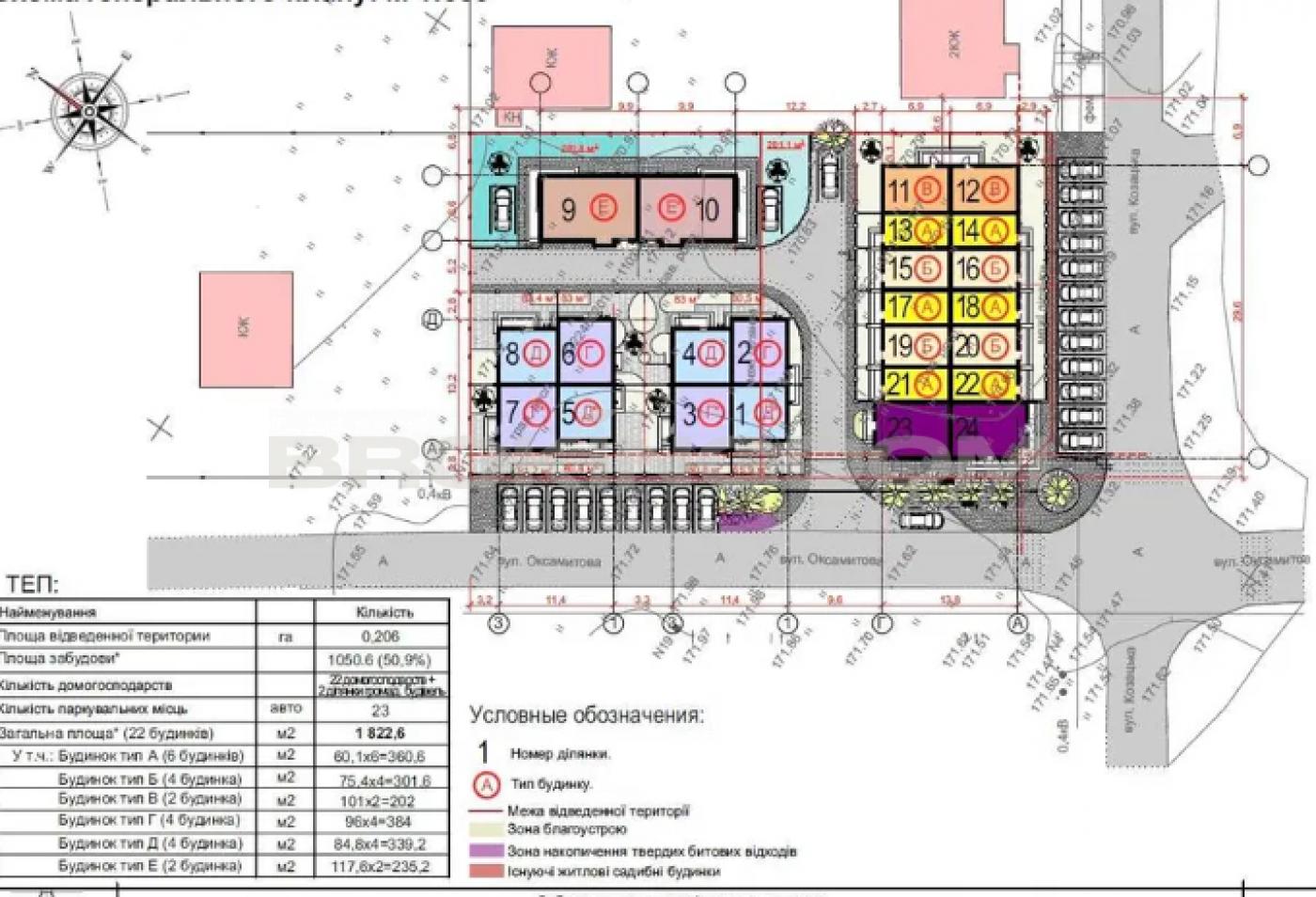 Щоб зрозуміти розташування таунхауса в комплексі подивіться на останній фото-план “номер 15Б”.