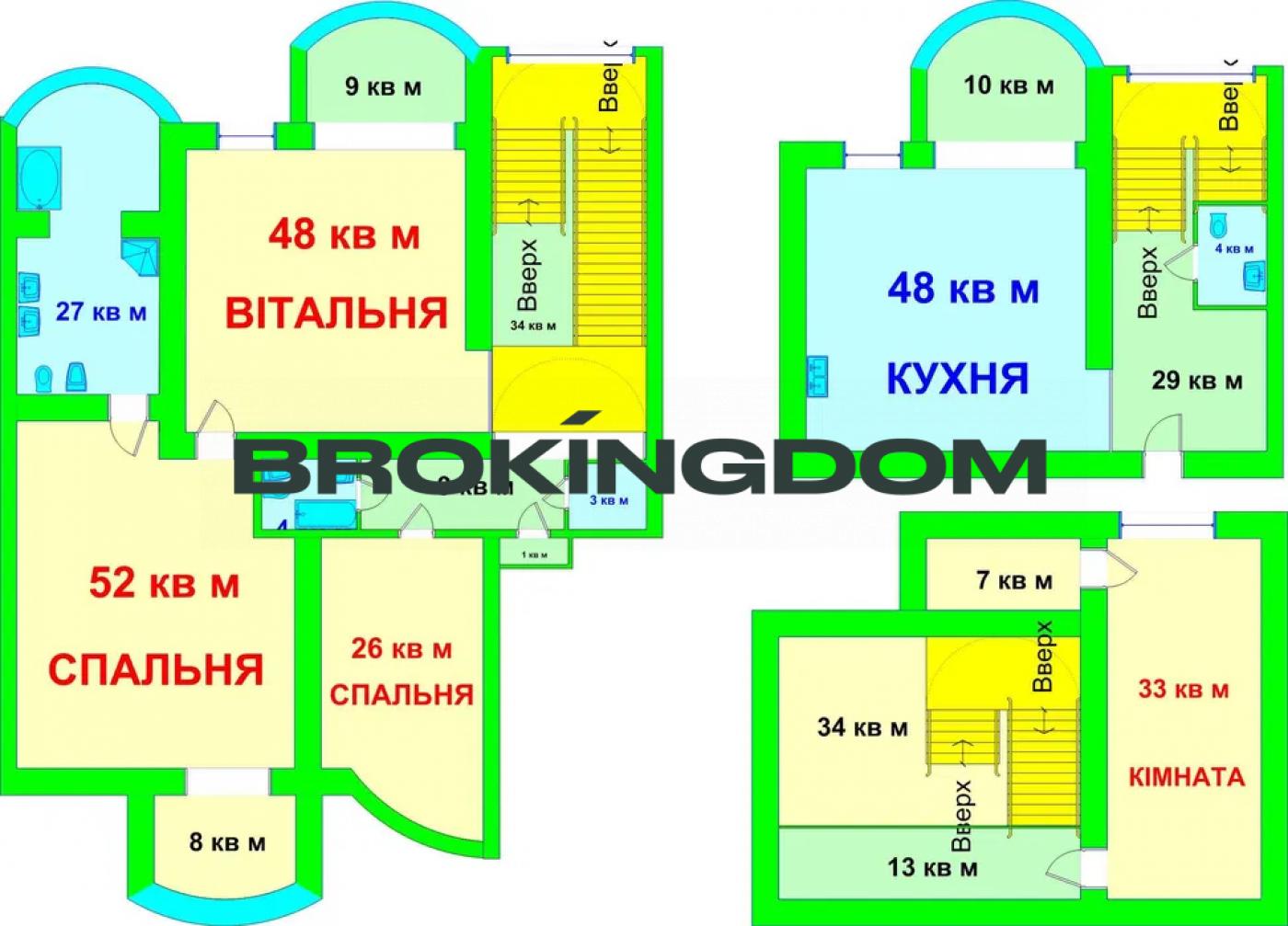 — Кухня – 48 м2: холодильник, варильна панель, посудомийна машина, кондиціонер, стіл з барними стільцями, стіл зі стільцями, фільтри очищення води;